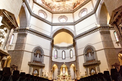 Il corpo della Basilica è costituito da tre navate saldate ad un enorme triconca rotonda che sorregge la Cupola del Brunelleschi: la più grande mai costruita totalmente in muratura.